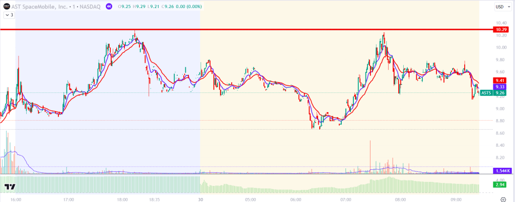 ASTS made a 52-week high at $10.29 (69.2% surge from the previous session) in the post market on 5/29/2024. It then tried to test that level again in the pre-market but fell by 4.1% in pre-bell hours. RVOL was still elevated and clearly there was still interest in this stock.