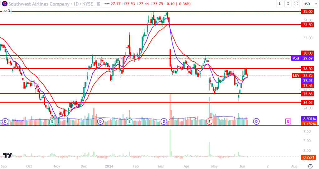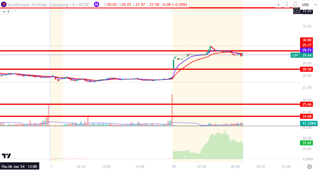 - $28.50: This level acted as resistance which LUV successfully broke above in the pre-market.